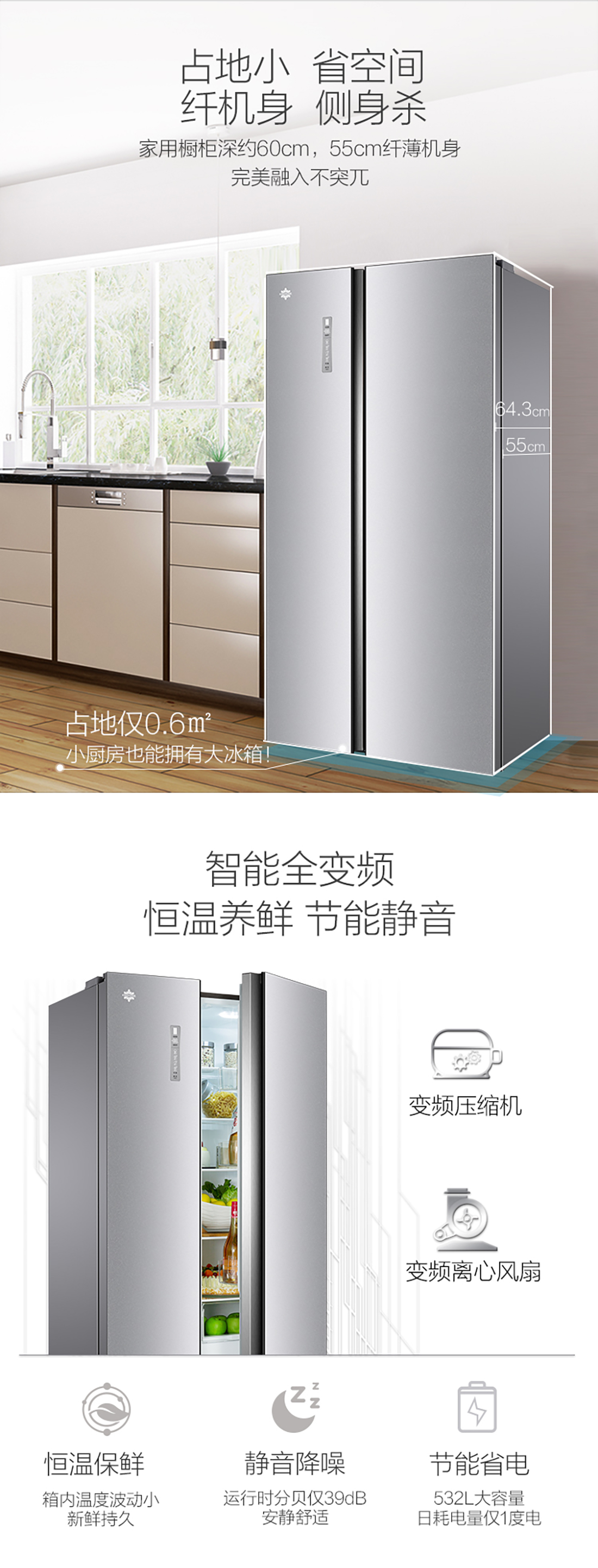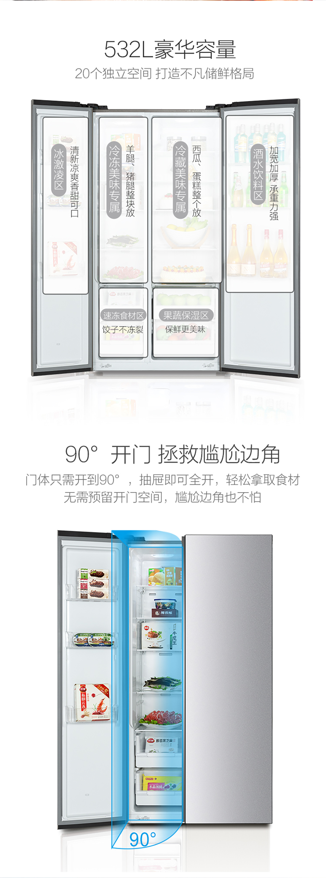 搭載-33℃深凍鎖鮮科技,肉汁飽滿更長(zhǎng)久。采用離子長(zhǎng)效抗菌凈味,抗菌率高達(dá)99.9%。3D沐風(fēng),風(fēng)冷養(yǎng)鮮,無(wú)需鑿霜。