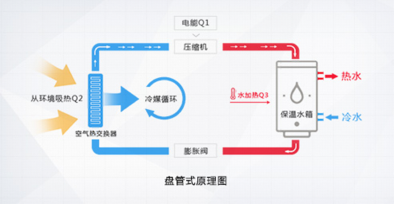 格力空氣能熱水器,傳承空調核心科技,以消耗一部分電能為補償,通過熱力循環,從周圍環境的低品位能源(空氣源)取得熱量,通過壓縮機將其輸送至冷凝器,釋放給水箱內的水將其加熱。它的工作原理與空調制熱時的原理相類似,只是空調是 從自然環境中吸取熱量,供給室內空氣,而空氣能熱水器是以這部分熱量加熱生活熱水,其能效比是電熱水器的4倍,是燃氣熱水器的5倍,是太陽能熱水器的近2倍,是一種新型的高效、節能、環保的熱水器產品。一度電的付出,4倍熱量的收獲!